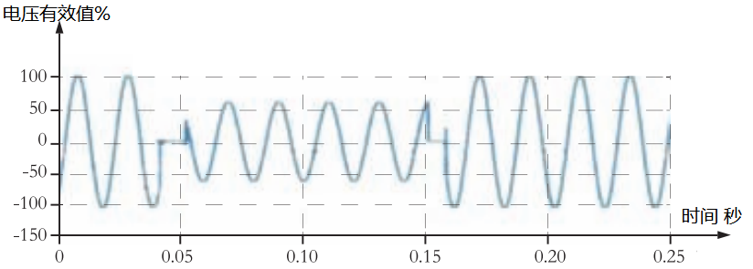 電力系統中某點工頻電壓方均根值突然降低至0.1 p.u.以下,并在短暫持續10 ms~1 min后恢復正常 的現象。[GB/T 30137—2013,定義3.2]
